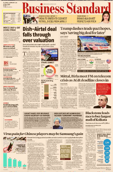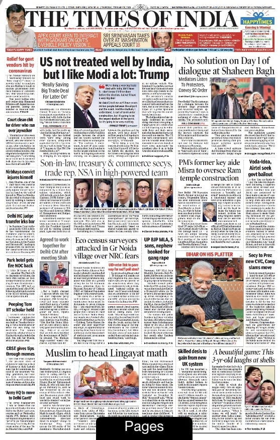 It was the first day of the Shaheen Bagh mediation and it really went nowhere. But there’s palpable excitement ahead of US President Trump’s visit even if all the headlines say ‘no deal’ to trade deal. Ayodhya’s Ram temple makes a brief appearance with appointments to the temple construction board. Telcos woes on pending dues continue to dominate the financial papers — and like Shaheen Bagh, here too, no light is in sight.