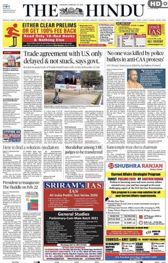 The Times of India leads with Trump’s statement just days ahead of his visit, “We can have a trade deal with India, but I’m really saving the big deal for later on”. This, says TOI, “virtually confirmed that there will be at best a modest outcome of deliverables…’’