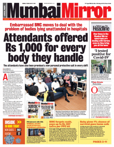 In the Mumbai daily’s main report, ‘Attendants offered Rs 1,000 for every body they handle’, the Mirror notes that “After being embarrassed repeatedly by reports of bodies lying around unattended in its hospitals for hours and attendants being afraid of going anywhere near them, the BMC has finally found a solution to the problem – money. BMC issued a circular Monday promising Rs 1000 to every pair of attendants for each body packed, carried to the mortuary, and handed over to the concerned family.” Images of bodies at Sion Hospital have been widely circulated on social media in the last week.