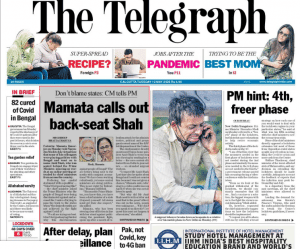 The Telegraph says: “Mamata Banerjee told… Narendra Modi to his virtual face that some of his colleagues were playing politics with Bengal and went on to name Amit Shah, who was seated behind the Prime Minister, mincing no words…,” She went on to ask Modi, “why the people of Bengal were being discriminated against and accused the Centre of trying to pass the buck.”