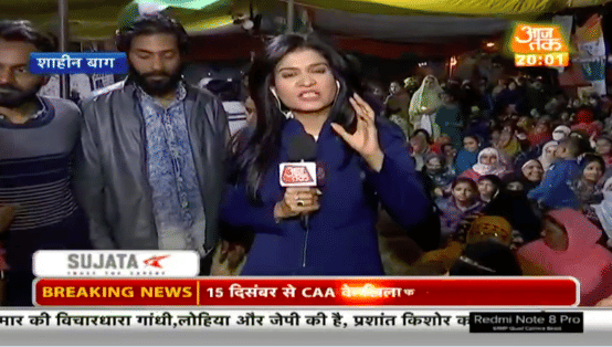 Back to Tuesday, Aaj Tak’s anchor Anjana Om Kashyap visited Shaheen Bagh where she was visibly impressed by the “scoreboard” that said the protest had been in progress for 66 days. After showing viewers the sights of Shaheen Bagh (`nazaara`), she proceeded to question the women about lawyer Sanjay Hegde’s mission of mediation after the Supreme Court had asked him to talk to the protesters.