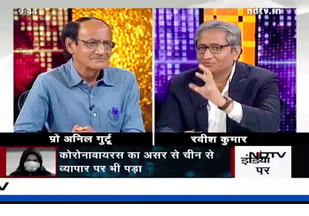 NDTV India’s anchor Ravish Kumar was concerned with the coronavirus outbreak and whether India had the infrastructure to diagnose the infection. Anil Gurtoo, PRO Lady Harding College, was most reassuring: “There are viral diagnostic centres in all corners of the country”, he said.