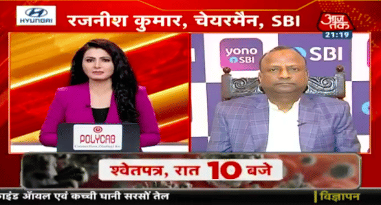 Aaj Tak’s Chitra Tripathi featured a so-called “exclusive” interaction with Rajnish Kumar, Chairman, State Bank of India. Similar interviews appeared on Times Now and India Today…