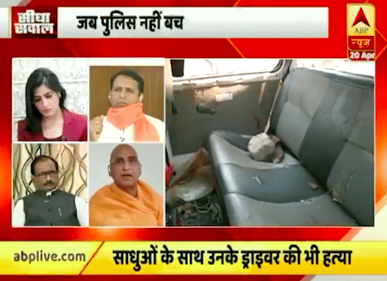 News 18 India’s anchor Amish Devgan asserted, “Sadhuon ki lynching par sannata hai,” (There’s complete silence on the lynching of those sadhus).