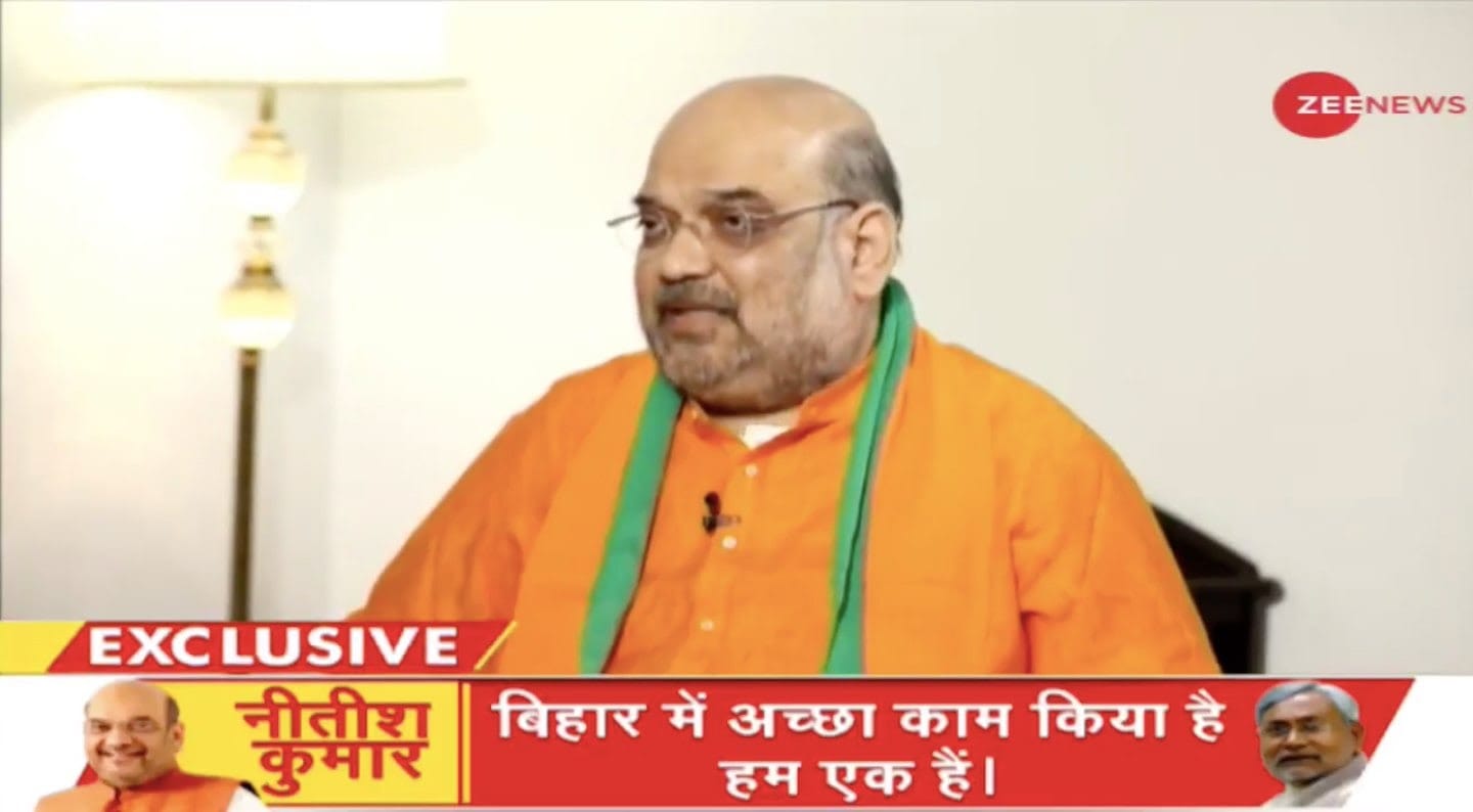 Zee News anchor Sudhir Chaudhary conducted an “exclusive” interview with Union Home Minister Amit Shah about the upcoming Bihar polls. Shah said he wanted to clarify on behalf of the BJP and NDA that “LJP is not a part of NDA in the upcoming Bihar elections.”