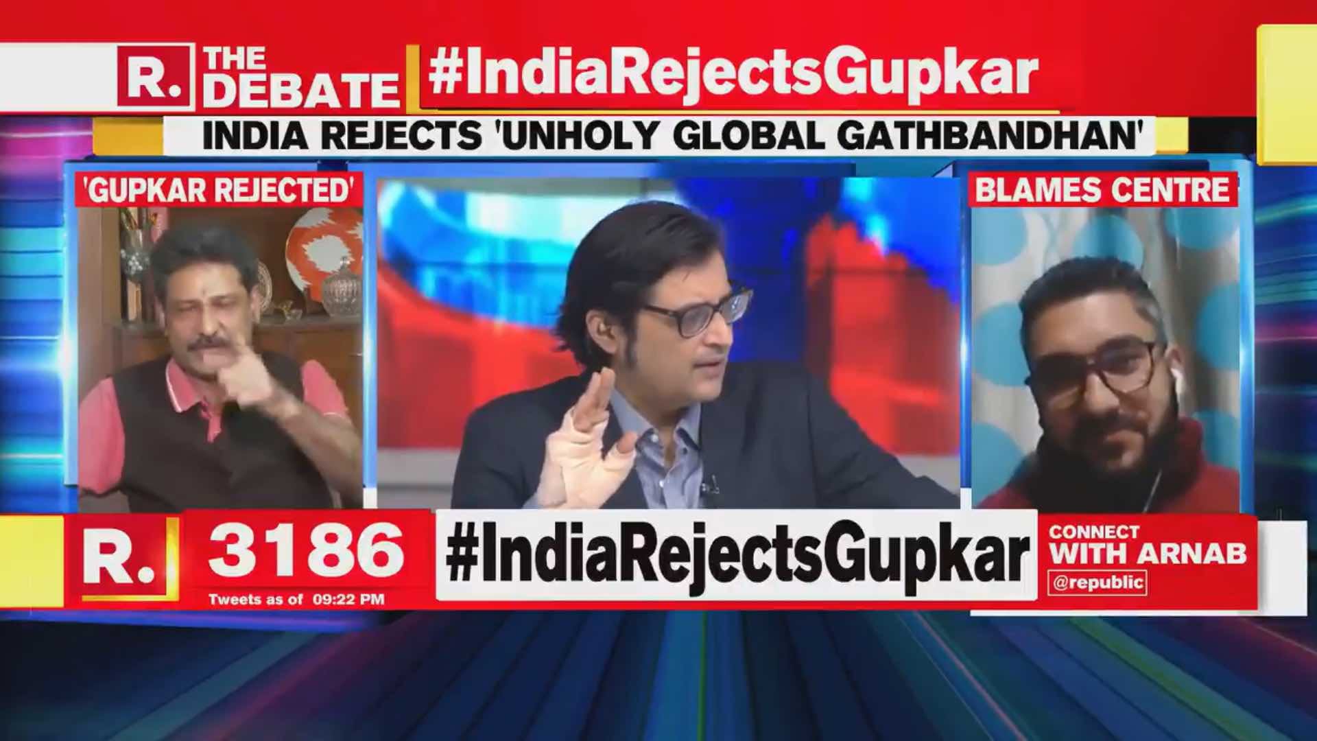 Congress youth leader Aabid Mir Magami was on the defensive and noted, “We are very clear, we are not part of the Gupkar Alliance.” But Goswami immediately replied, “You are lying.”