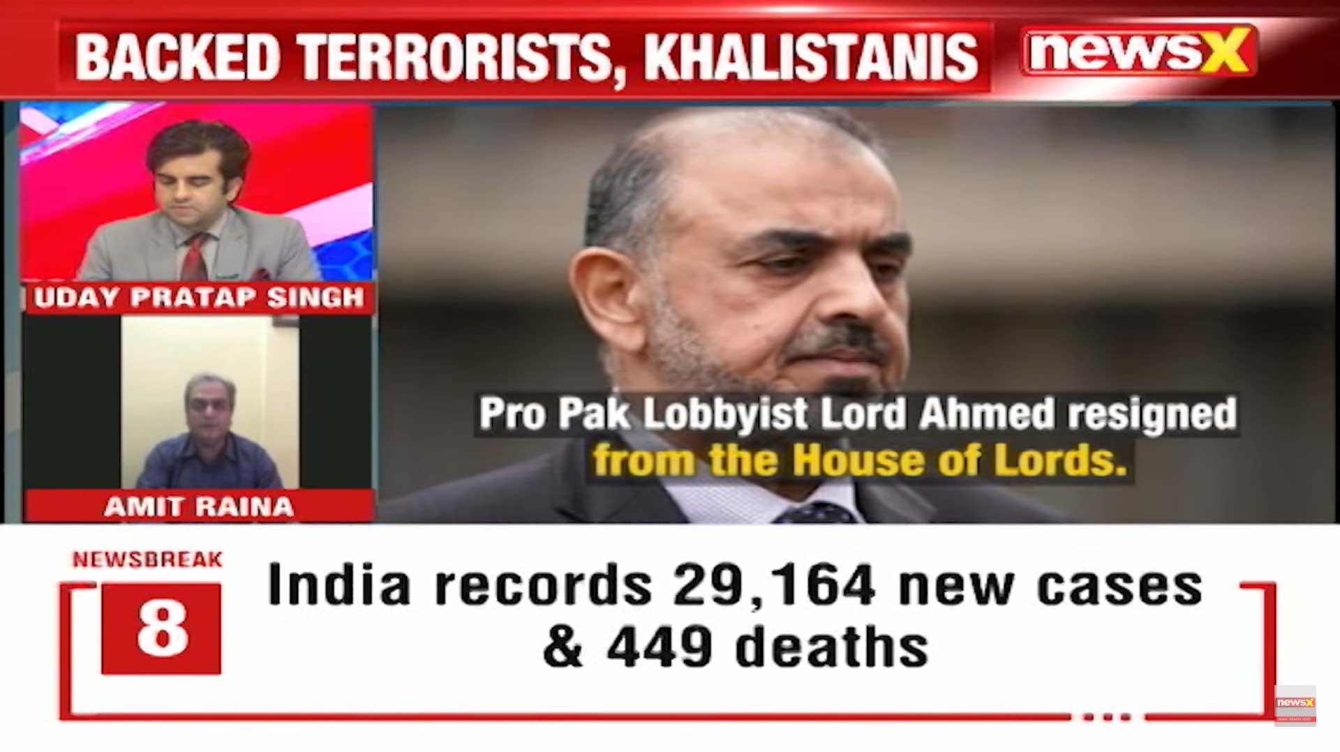 NewsX anchor Uday Pratap Singh discussed the resignation of Lord Nazir Ahmed, a UK parliamentarian from the House of Lords, who has been a vocal critic of Indian policies. Ahmed, who was born in Pakistan-occupied Kashmir, was accused of exploiting his position to pursue sexual relations with vulnerable women who asked him for help.