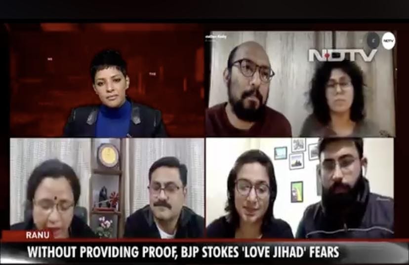 On NDTV 24/7, anchor Sarah Jacob asked if political parties were “communalising inter-faith love for political mileage”.