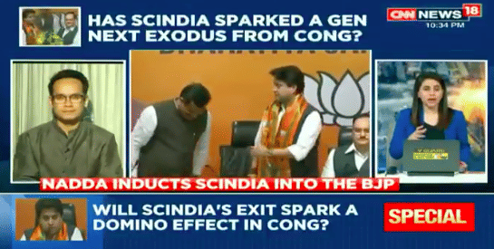 Times Now anchor Navika Kumar was, as usual, dramatic in her line of questioning, “Is Scindia joining the Modi and Shah team, proof that the Modi model is most credible?”