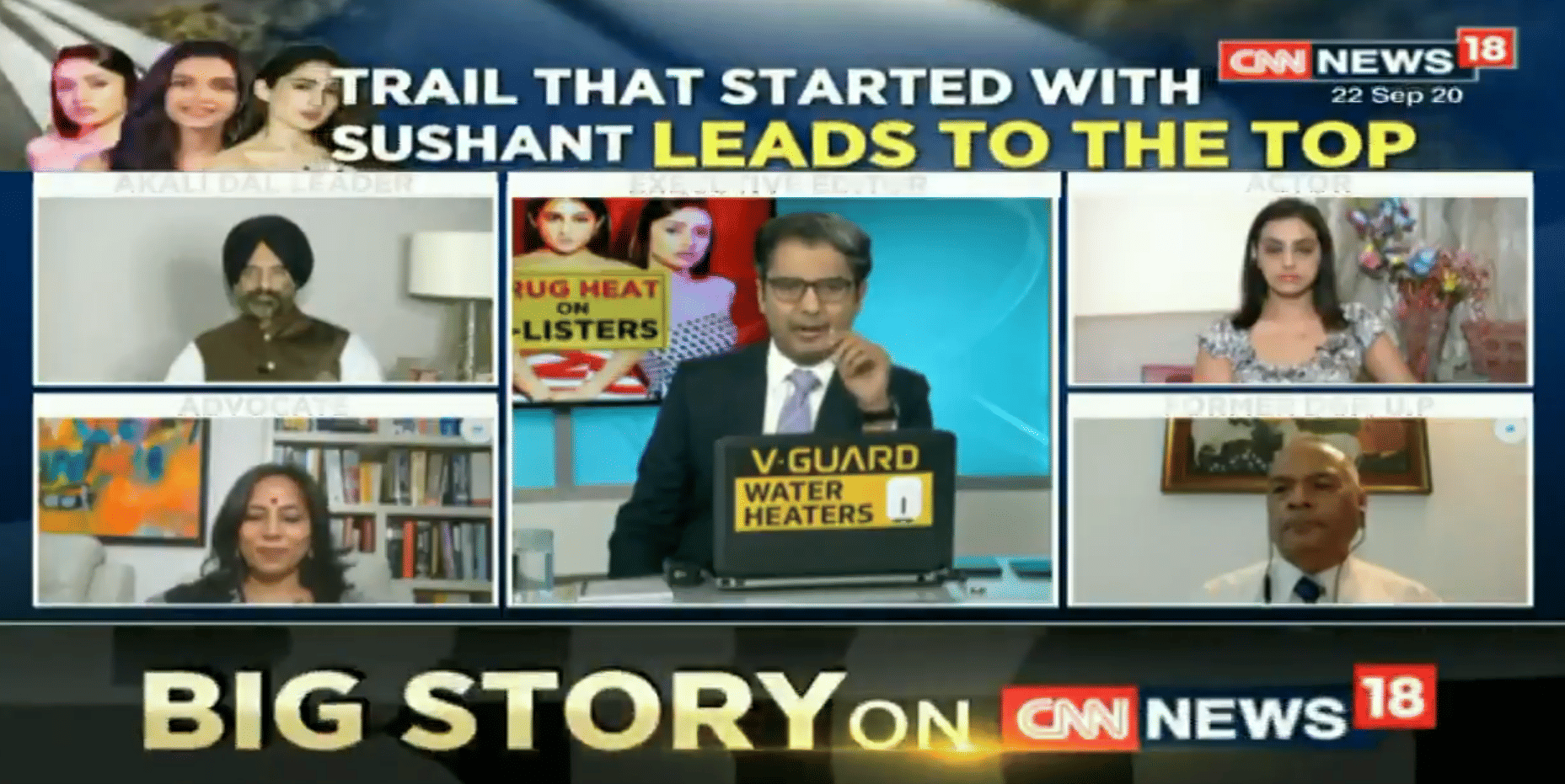 “There’s Deepika Padukone…we’re talking about Sara Ali Khan, Shraddha Kapoor, these are A-listers, not small-time actors, this is not restricted to one Rhea Chakraborty,” said anchor Zakka Jacob while the ticker ‘Drug Taint on Bollywood’s Best & Brightest’ flashed.