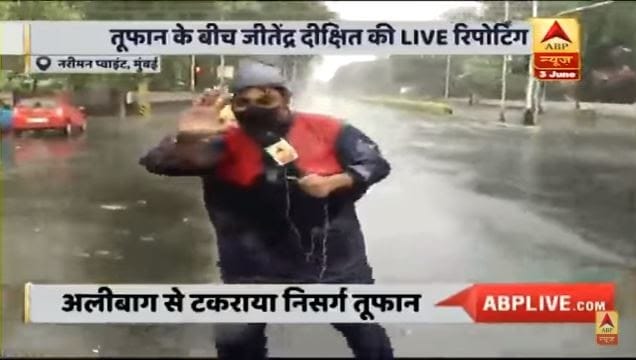Meanwhile, ABP News featured live coverage of Cyclone Nisarga from Mumbai with its reporter and camera person standing right in the middle of the road a few kilometres away from the Arabian sea.