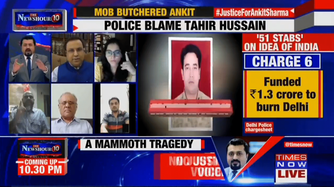 Times Now’s Madhavdas Gopalakrishnan focused on the chargesheet filed by the Delhi Crime Branch against AAP MLA Tahir Hussain, naming him as a conspirator in the Northeast Delhi riots of February this year, and held him responsible for the death of Intelligence Bureau officer Ankit Sharma.
