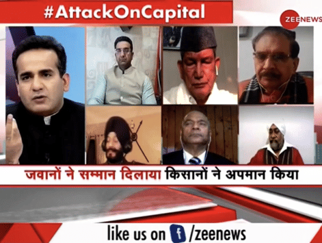 Zee News anchor Aman Chopra opened his debate with the remark: “Most intelligence inputs proved right as ‘Khalistanis’ tried to capture the Red Fort today.”