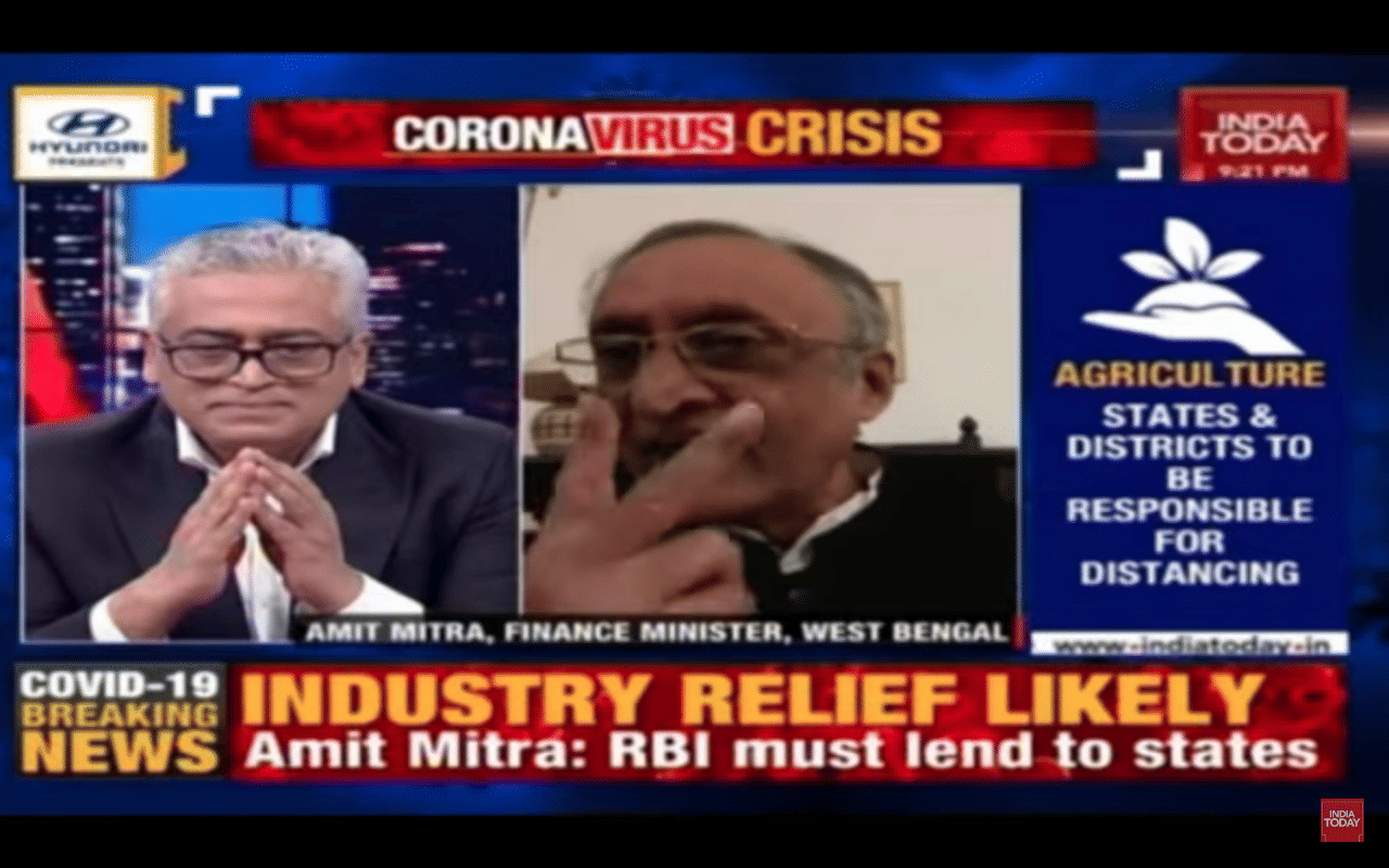 West Bengal Finance Minister Amit Mitra called coronavirus a “hydra-headed war” that had to be tackled by looking at lives as well as livelihoods on India Today, while Republic’s Arnab Goswami dismissed all those hoping for a more relaxed lockdown and said it had to be a 100 per cent lockdown.