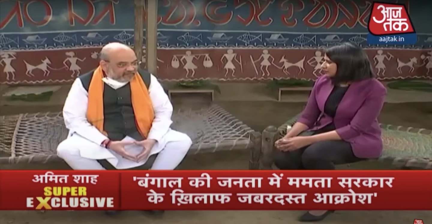 Aaj Tak aired a “super exclusive” conversation with Home Minister Amit Shah, who is visiting West Bengal that is set to go to polls next year.