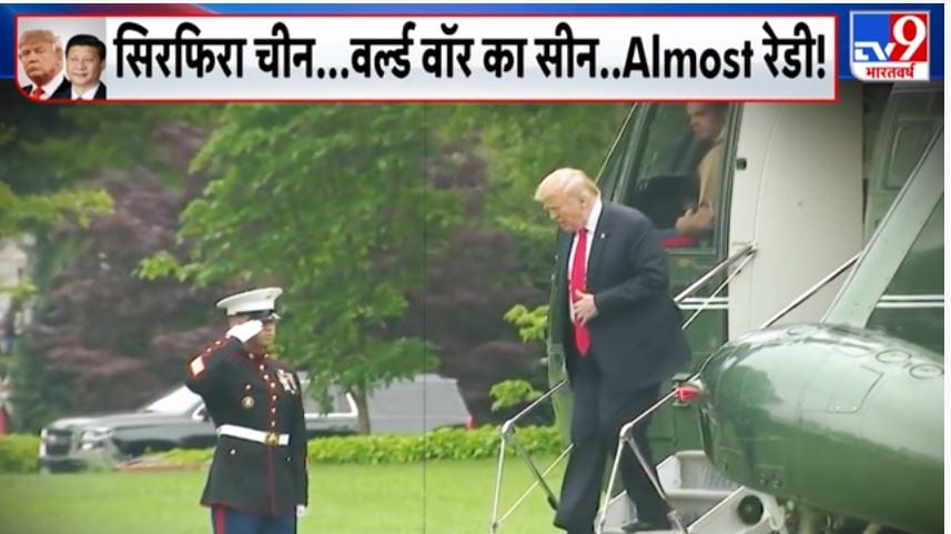 War was on everyone’s mind. Anchor Nishant Chaturvedi on TV9 Bharatvarsh, too, predicted a World War due to tensions between US and China. ‘Chor chori se jaaye, hera pheri se na jaaye’, declared Chaturvedi. ‘Jinping se America lega badla, World War III tay’, the headline flashed on screen.