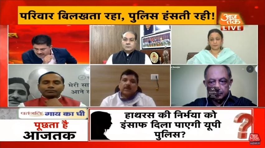 On Aaj Tak’s ‘Dangal’ anchor Rohit Sardana asked when the government will open its eyes on the Hathras matter. “The way the girl’s dead body was burnt by the police and administration, it sends a message that they were in some sort of a hurry,” he noted. But his panelists seemed only to want to blame each other.