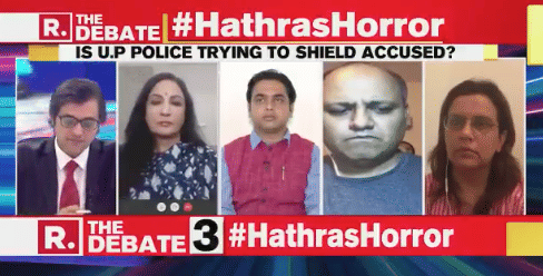 Moving to Republic TV, where even Arnab Goswami was forced to turn his gaze away from Bollywood and focus on what the channel dubbed the #HathrasHorror. Goswami said, “It is horrendous beyond words… Isn’t it disgusting that after a girl is gangraped in a field by four people who break her spinal cord and cut her tongue, the family is told that it is your fault?”