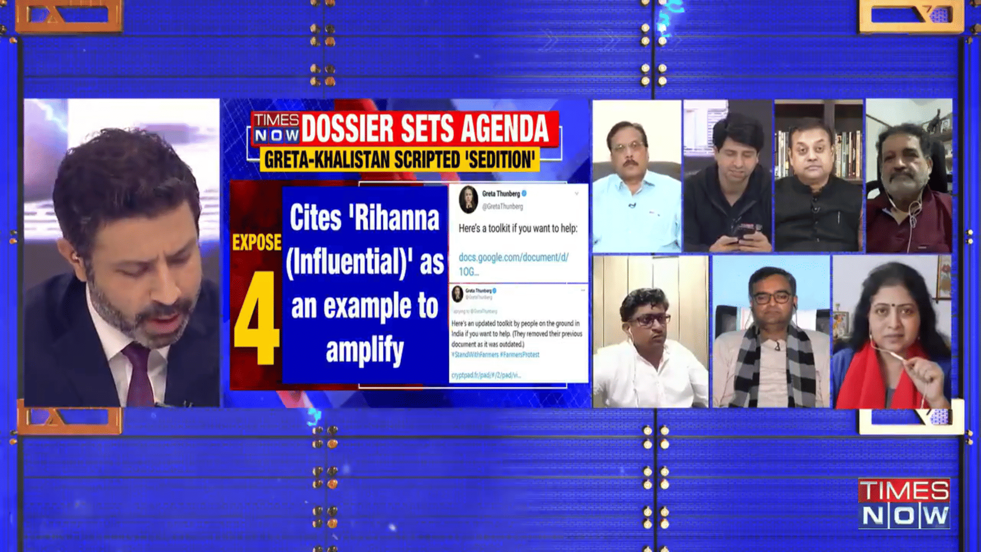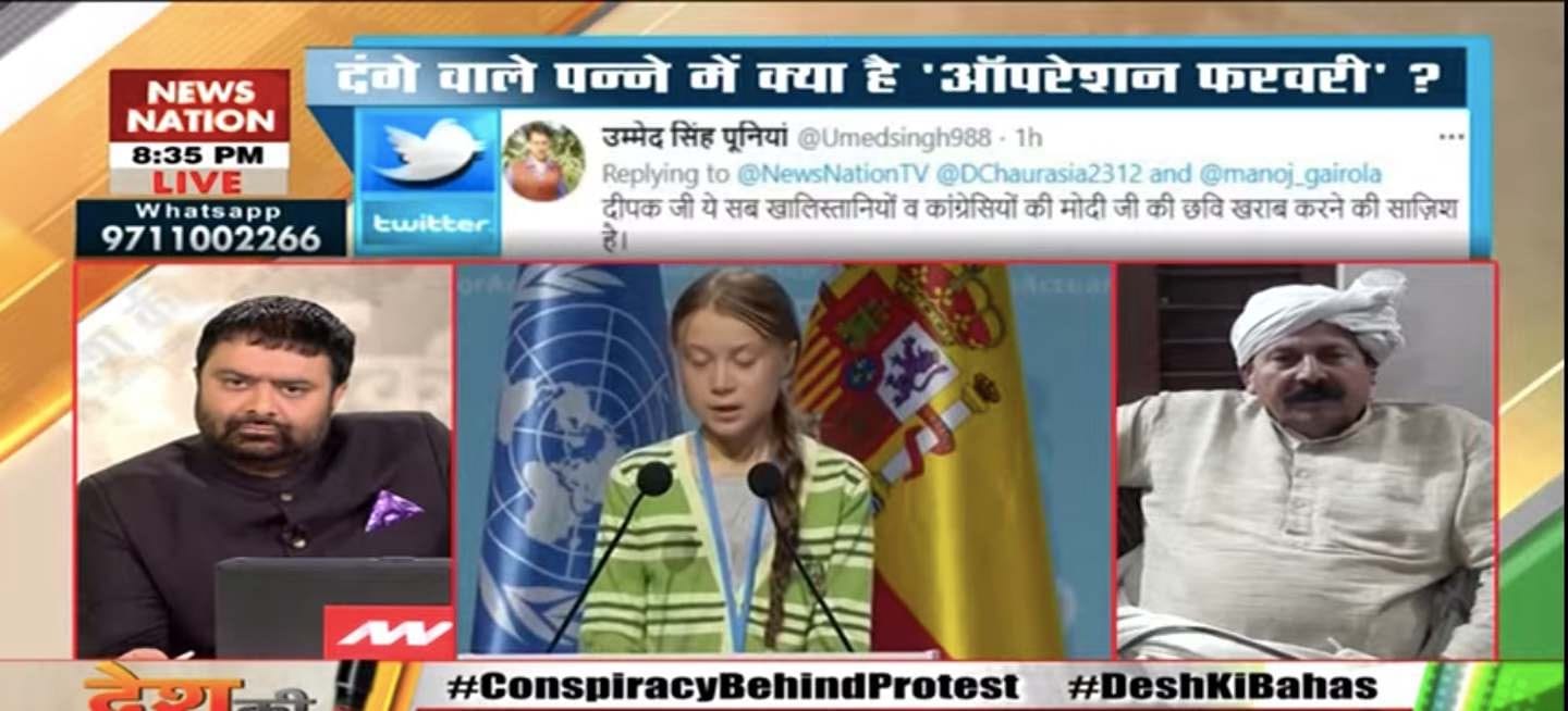 “Do you know Greta Thunberg, Mia Khalifa or Rihanna? They have been writing more than is required on the farmers’ protest these days and spreading lies about India,” anchor Deepak Chaurasia said to BKU president Naresh Tikait.