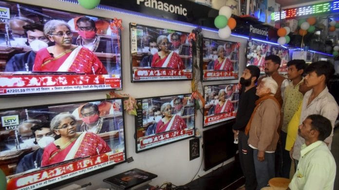 Zee News had an ‘exclusive’ interview with Finance Minister Sitharaman but so did Times Now and DD News, so nothing really exclusive about it. Still, the anchor seemed pleased: “Markets have given a thumbs up. I don’t think this kind of response has been witnessed after a Budget announcement in many years…. How do you see this?” he asked the FM.