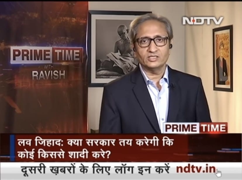 Anchor Ravish Kumar debated ‘love jihad’ on NDTV India. It is an alleged phenomenon where Muslim men are accused of persuading Hindu girls to convert under the guise of love.