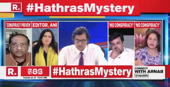 Republic TV‘s Arnab Goswami said what happened in Hathras has been “shrouded in mystery, now the truth has begun to come out. Channels that spread lies have fled.” He claimed that he had tapes from the ground, eyewitness testimonies and written evidence that point at a “political conspiracy in cahoots with certain members of the Lutyens media to use the Hathras case to completely spin a fake news narrative.”