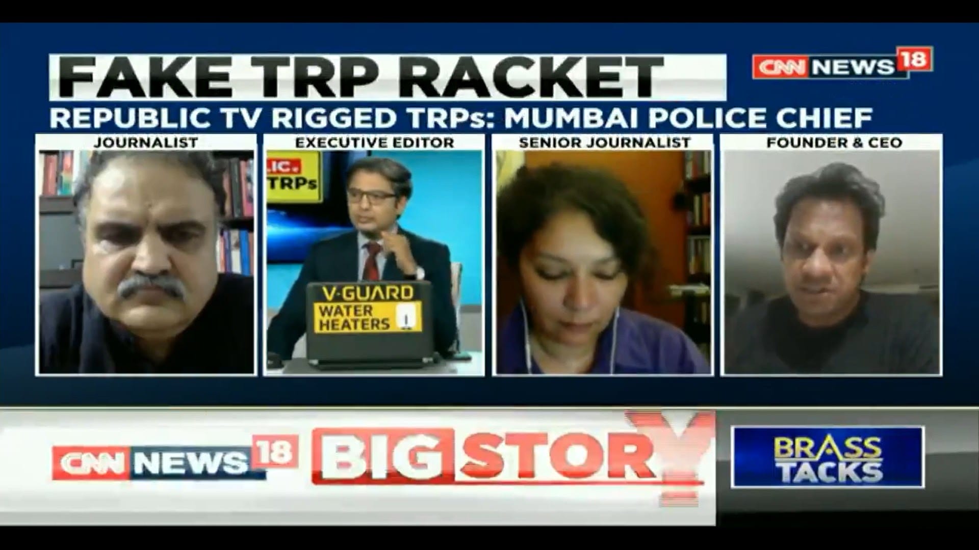 ABP News’ Rubika Liyaquat took the high road: “For the first time in the history of Indian television, such a huge betrayal has taken place, the people of Hindustan have been betrayed but good news is Mumbai Police has busted the TRP scandal very quickly,” she said.