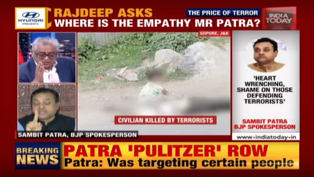 When Sardesai asked, “Where is your empathy?”, Patra replied, “I was trying to expose the ones who loved the Pulitzer pictures which showed India in dark light…and demeaned the Indian Army.”