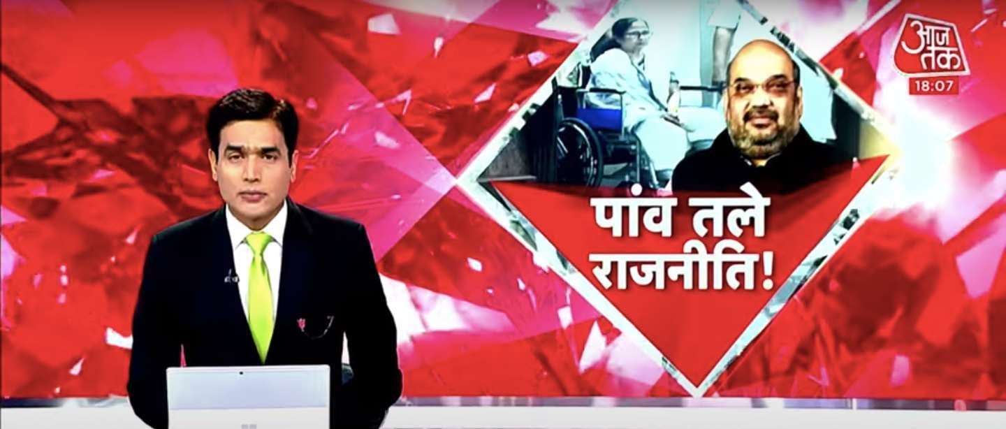 On Aaj Tak, anchor Sayeed Ansari turned to Bengal and lit into the Chief Minister Mamata Banerjee: “Mamata has started her broken leg politics.”