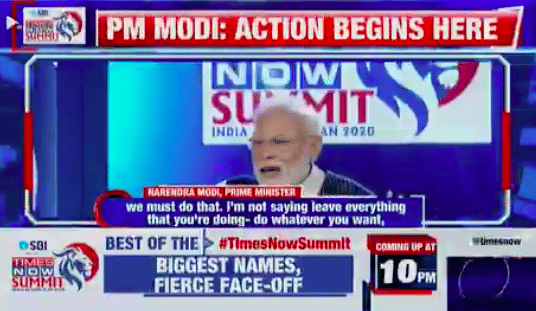Times Now spent Wednesday at a summit, its own as it happens, the 2020 Times Now Summit. Not unnaturally, prime time was devoted to the Prime Minister who delivered a stirring speech. Modi said, “I want to request all of you to not forget the ones who sacrificed their lives to make India independent.”