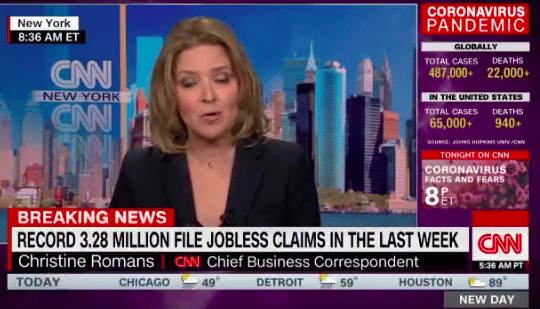 On the other side of the world, CNN was asking a sensible question. Chief Business Correspondent Christine Romans revealed that in the US, “Over 3.28 million people filed for first time unemployment benefits.”