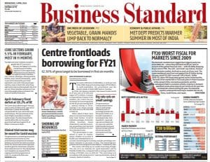 Echoing Mint’s sentiment, Business Standard’s lead expresses concern over the government and RBI’s decision to borrow 62.56 per cent of its 2020-21 gross borrowing target of Rs 7.8 trillion in the April-September period. In “Centre frontloads borrowing for FY21”, the newspaper notes: “When asked if there were plans to increase borrowing to help fund further Covid-19 stimulus packages, Economic Affairs Secretary Atanu Chakraborty said the borrowing programme had factored in all the possibilities of a further stimulus boost.”