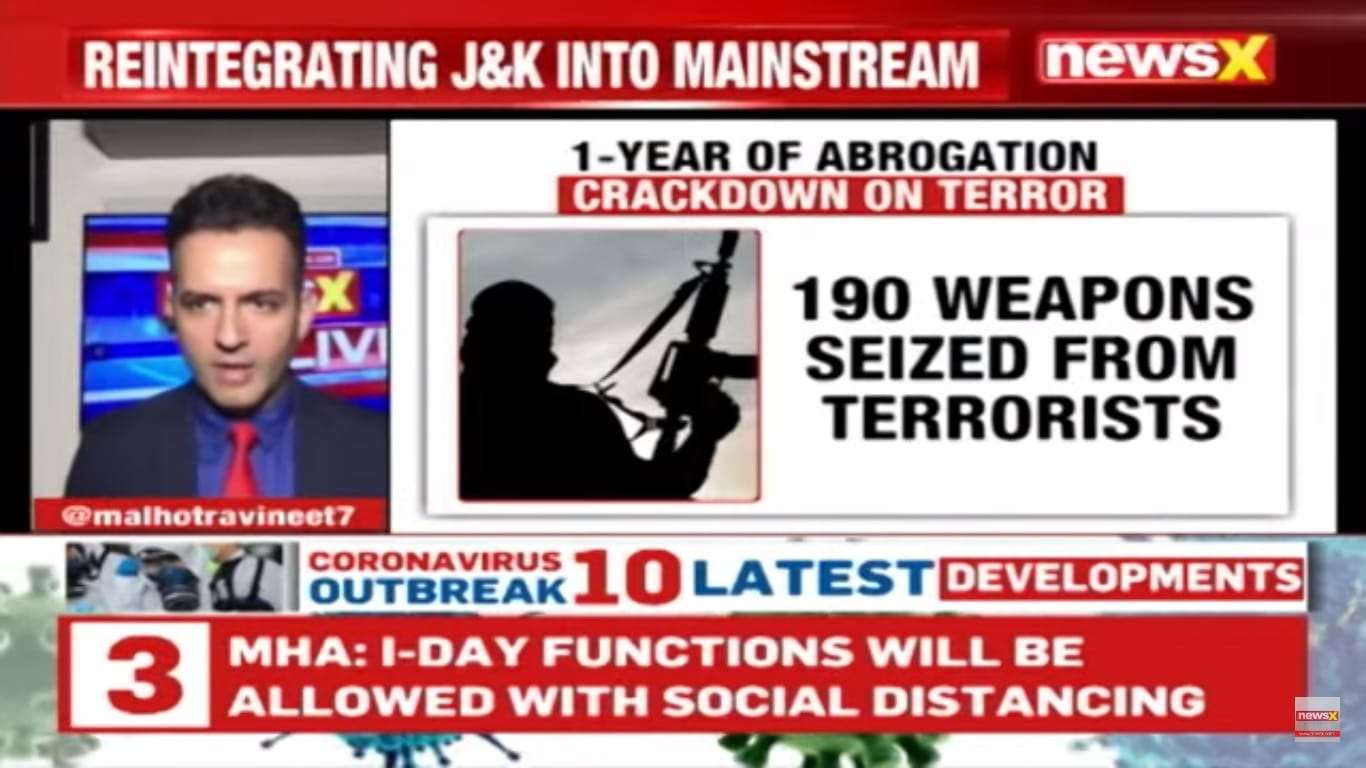With the first anniversary of the revocation of Article 370 nearing, NewsX‘s Vineet Malhotra discussed a Home Ministry report that found terror activities have reduced by over 30 per cent in J&K post the 5 August move.
