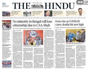 The Hindu, in its leads on Shah’s CAA comments (“No minority in Bengal will lose citizenship due to CAA: Shah”), says there was “hectic political activity”. The paper is the only one to highlight, in its lead paragraph, that “… a march of BJP supporters set off shock waves as they raised the incendiary ‘Goli Maro Salon Ko’ (Shoot the traitors) slogan in the heart of the city.”