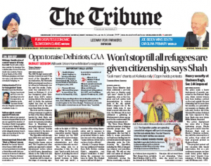 The Tribune also focuses on the upcoming Parliament session in its lead, “Oppn to raise Delhi riots, CAA…”