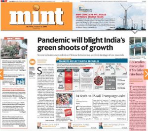 Mint shatters hopes of an economic recovery with its big and bold lead headline, “Pandemic will blight India’s green shoots of growth”. Trade concerns over coronavirus see the spread of the disease to countries other than China which “is now threatening to disrupt alternative sources of supply”. “Drug makers and fertilizer companies will face imminent shortages if the situation is not resolved soon,” are the gloomy predictions.