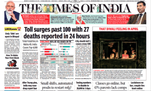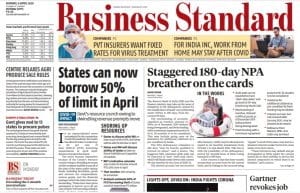 Unlike ET’s distressing lead delivers some hopeful news on the financial state in states. In “States can now borrow up to 50% of limit in April”, the paper reports the Centre’s decision to allow states to avail up to 50 per cent of their 2020-21 (FY21) borrowing requirements in the month of April itself which is sure to provide relief.