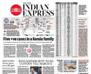 New Indian Express also focuses on the five fresh cases of coronavirus in Kerala and “the carelessness of three fliers of a family ruined the reputation of Kerala that was seen as a model on handling the deadly coronavirus”. According to the report, “the three — a couple and their son — had recently returned to Kochi from Italy but evaded airport screening”.