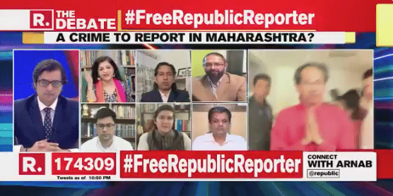 Republic TV‘s Arnab Goswami avoided Bollywood for one evening; instead, he concentrated on the channel’s reporters being taken into police custody by the “dictatorial” Maharashtra government. He explained how his journalists were following an important lead in Karjat when, “Viewers, you will be shocked. They were thrown into jail for four days for simply making an enquiry.”