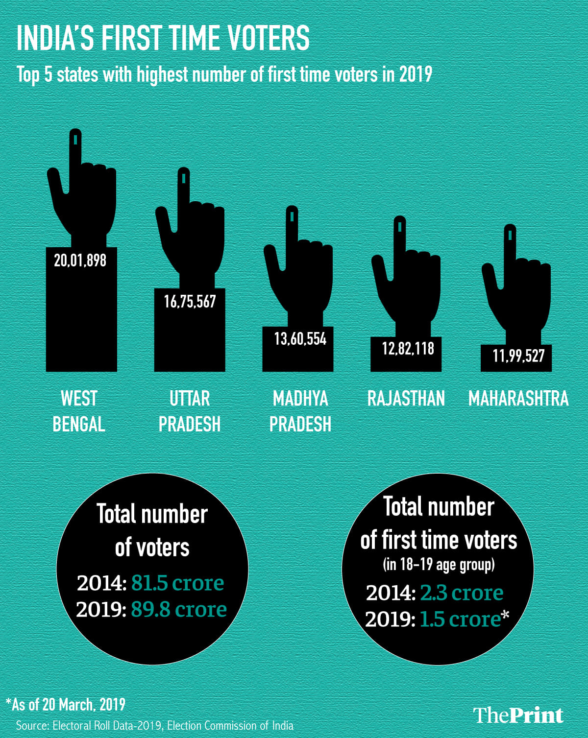 “There could be first-time voters who are over the 18-19 age group and who are enrolling for the first time in 2019. We do not have data of all first-time voters with us,” Ashok Lavasa, Election Commissioner, told ThePrint.