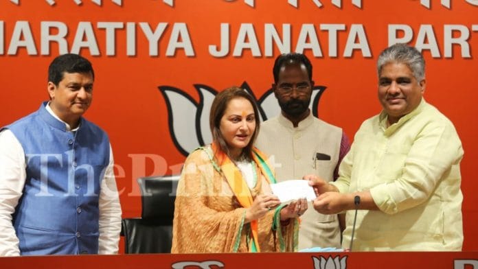 New Delhi: Actor-turned-politician Jaya Prada joined the BJP on Tuesday and may be fielded by the party from the Rampur parliamentary constituency in Uttar Pradesh.
