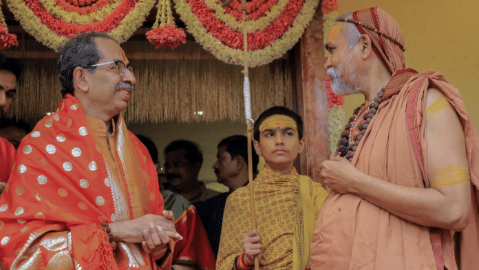 Mumbai: Swami Avimukteshwaranand Saraswati, the Shankaracharya of Jyotirmath, met Shiv Sena (UBT) leader and former Maharashtra chief minister Uddhav Thackeray at the latter’s residence, Matoshree in Mumbai, Monday. He also attended a puja ceremony at Matoshree.