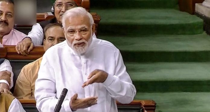 New Delhi: At the end of an eventful day in Parliament, garnished by the hug from Congress president Rahul Gandhi, Prime Minister Narendra Modi ended the discussion on the no-confidence motion by playing the ultimate victim card. He claimed he was democratically elected by 125 crore Indians, but Gandhi’s gesture in which he asked him to “get up” was in desperation to dislodge a “kaamdar”, son of a poor mother, and a “backward caste” like him.