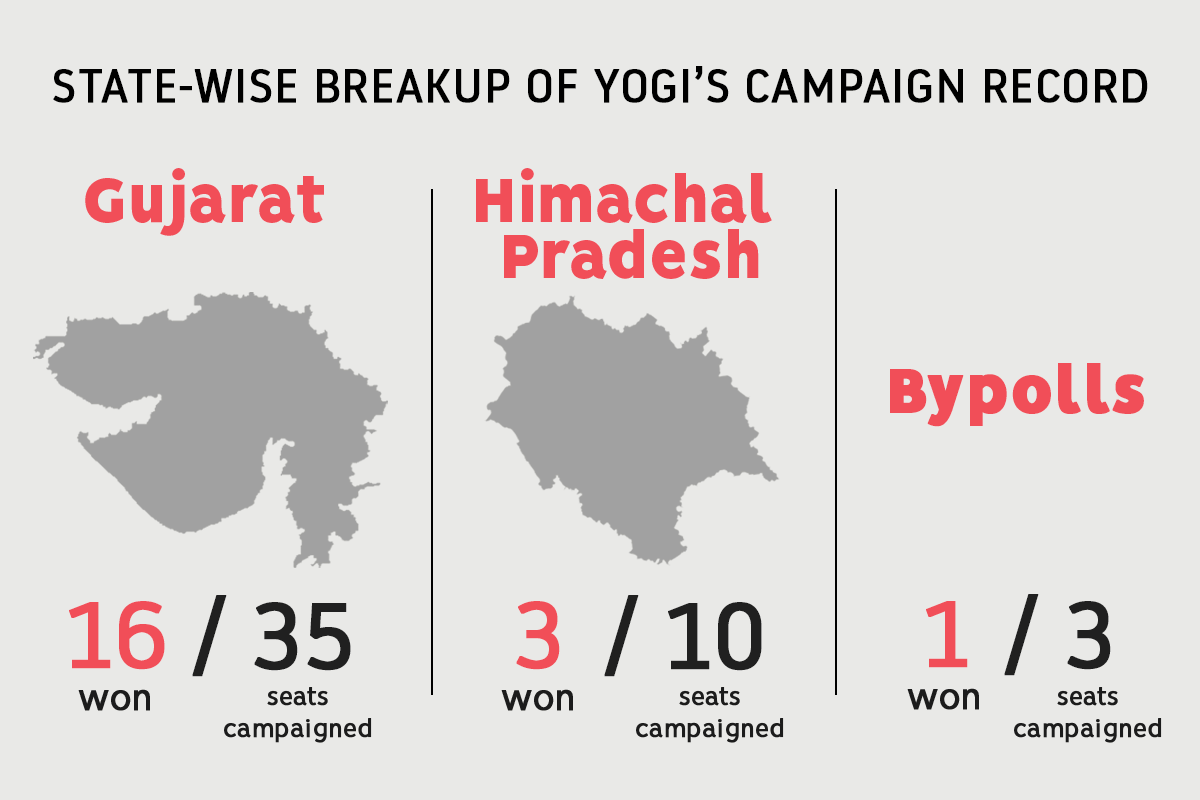 The BJP has won 20 of these 48 seats, giving star campaigner Yogi a strike rate of 42 per cent.