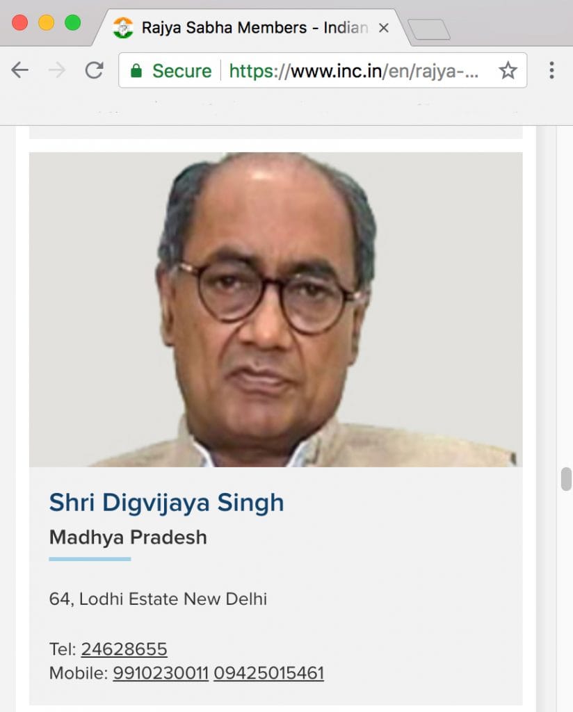 It also quotes a contact number that is listed as senior Congress leader Digvijaya Singh’s on the party website.