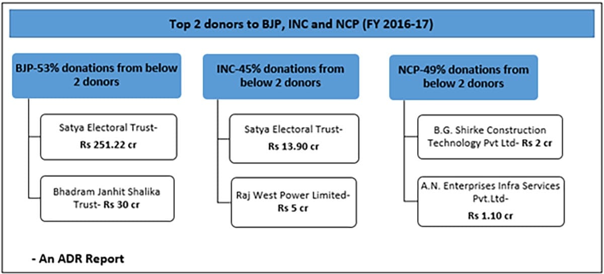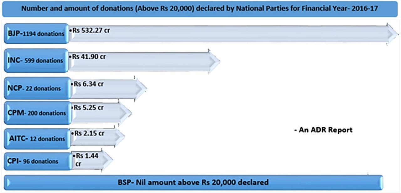 The new report, which focuses on declared donations received by the national political parties, is based on the data submitted by them to the Election Commission.
