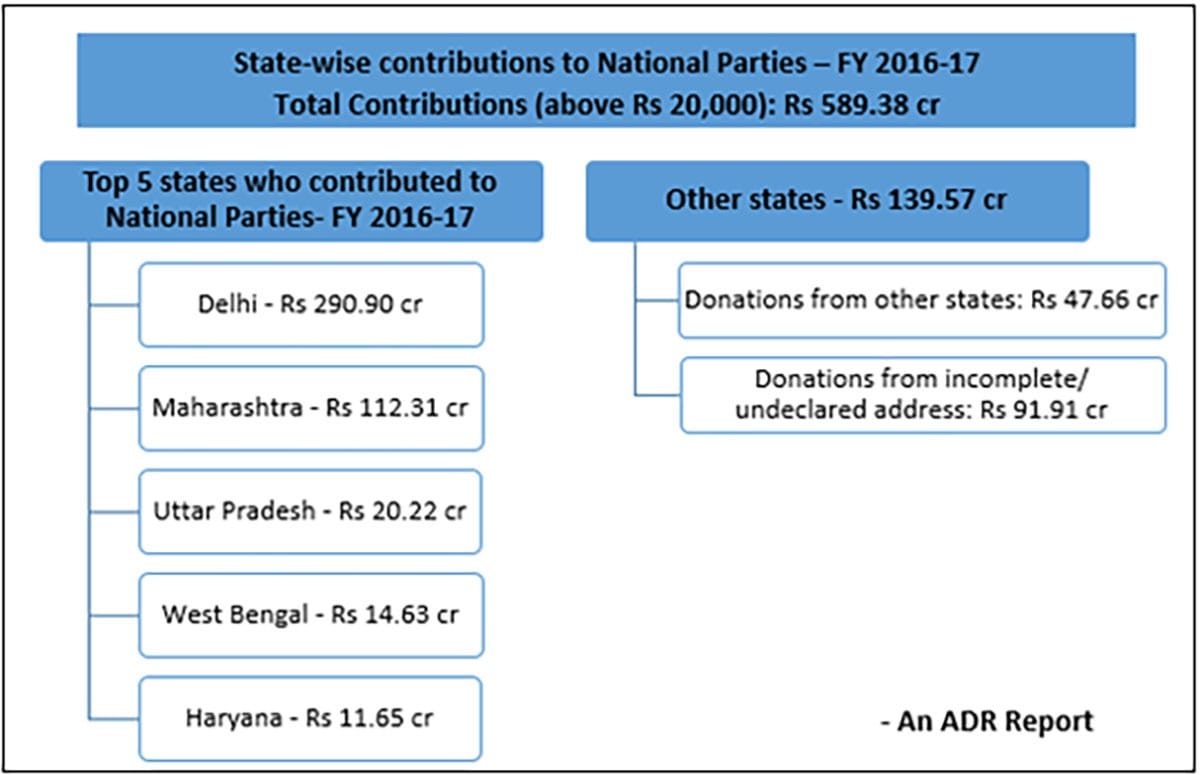 The report flagged donations from unknown sources, while urging political parties to provide a list of all their donors under the Right to Information (RTI) Act.