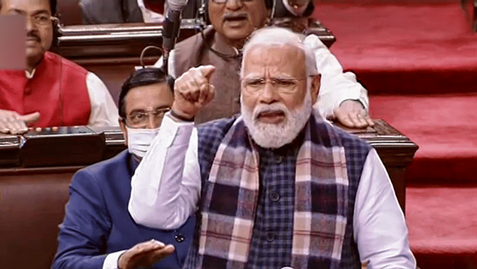 New Delhi: Continuing his attack on the principal opposition Congress for the second day in a row, Prime Minister Narendra Modi tore into the party in the Rajya Sabha Tuesday, in a no-holds-barred political address that came ahead of the assembly polls in five states.