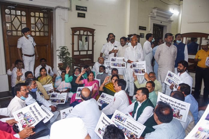 Members of the opposition Grand Alliance, comprising RJD, Congress and the Left, were agitated over the Bihar Special Armed Police Bill, 2021.