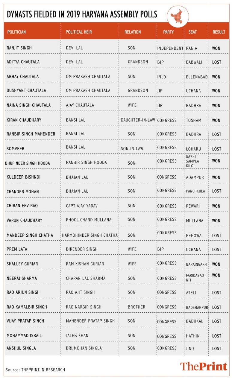Partap Singh’s son Ravinder Chautala contested as an Independent in the 2009 assembly elections against Ajay, but lost. He supported Naina Chautala during the 2014 Haryana elections after Ajay was jailed. However, now he is back in the INLD, supporting Abhay. His wife Sunaina was appointed as general secretary of the INLD’s women wing and was fielded against Naina from the Badhra seat in the 2019 assembly election.